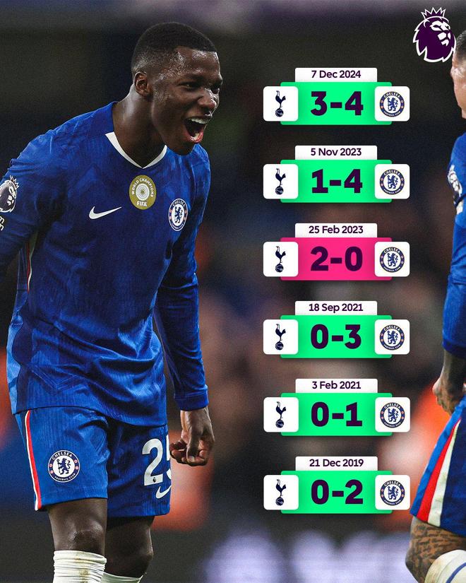 切尔西近14次英超交手热刺赢下11场,6场客战5次取胜